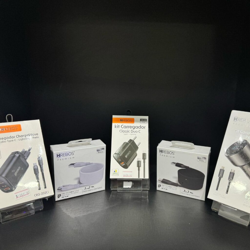 Carregadores, cabos, suportes, fones de ouvido, películas, capas e muito mais